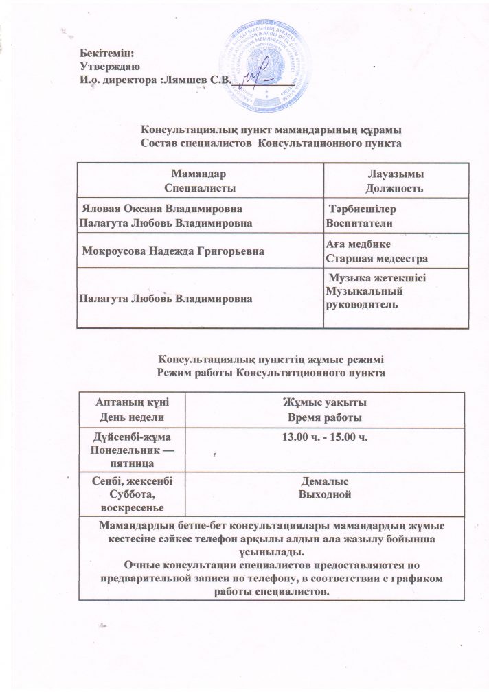 Консультативтік пункттің жұмыс режимі