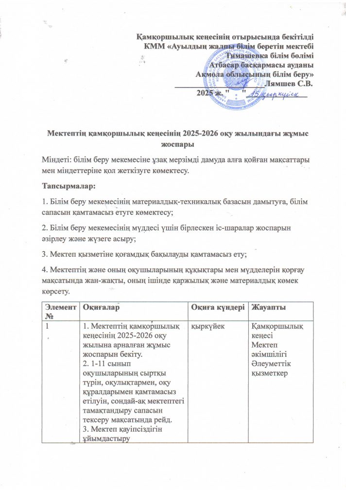 КГУ «Общеобразовательная школа села Тимашевка отдела образования по Атбасарскому району управления образования Акмолинской области»
