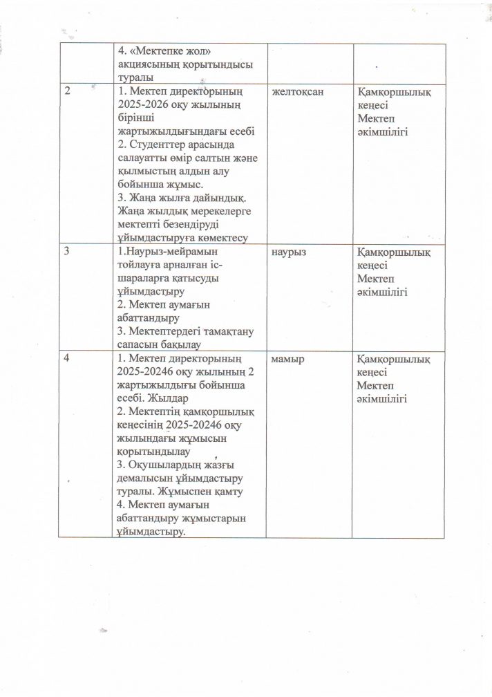2025-2026 оқу жылына арналған жұмыс жоспары