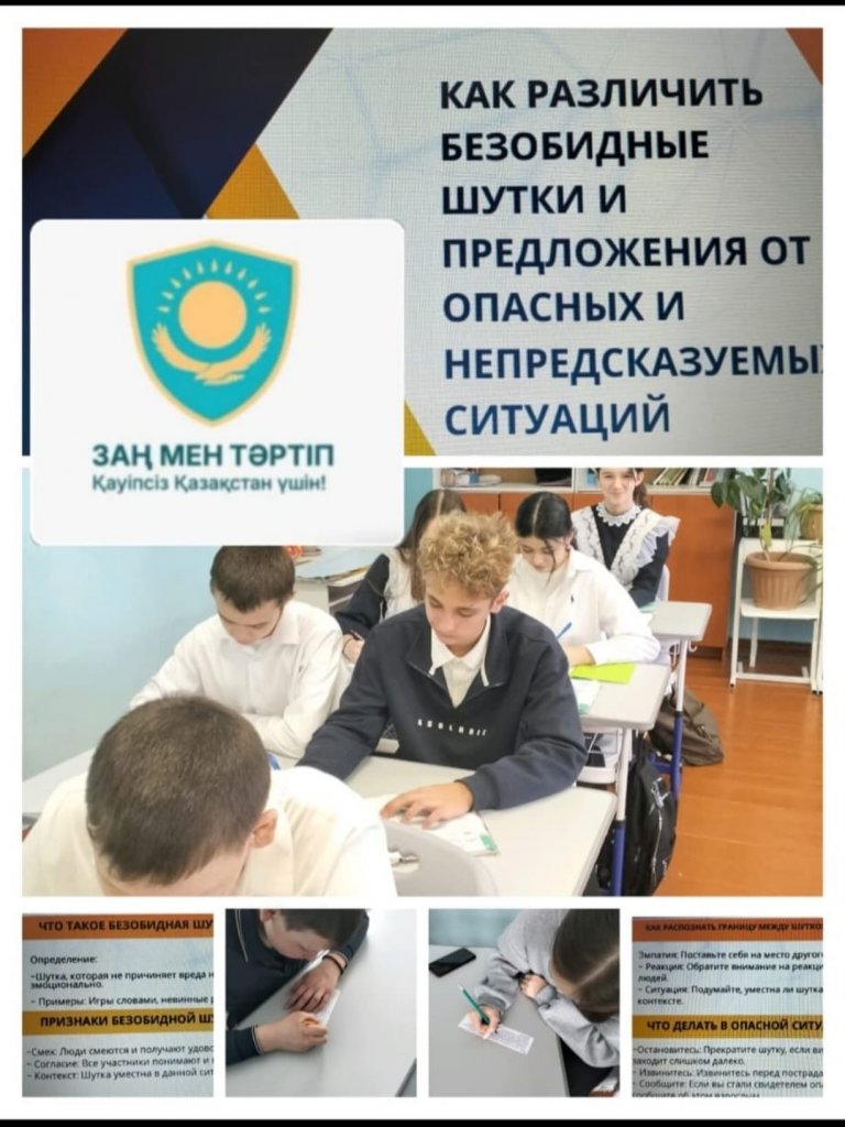 16 наурызда 8 сыныпта «Қауіпсіз емес және алдын ала болжап болмайтын жағдайлардан зиянсыз әзілдер мен ұсыныстарды қалай ажыратуға болады» тақырыбында Прокурор сағаты өтті. Бұл тақырып өте өзекті және пайдалы болды: оқушылар жеке қауіпсіздікке қатысты маңызды...