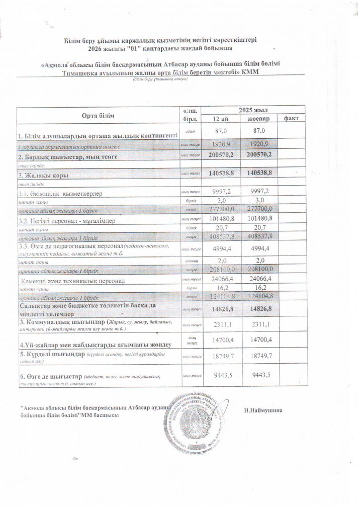 «Ақмола облысы білім басқармасының Атбасар ауданы бойынша білім бөлімі Тимашевка ауылының жалпы орта білім беретін мектебі» КММ