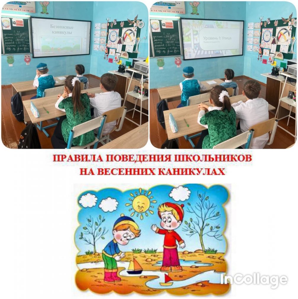 Сынып сағаттары әңгімелер, пікірталастар және ситуациялық тапсырмалар түрінде өтті. Оқушылар белсенді қатысып, пікірлерімен бөлісті және көктемгі демалысты қауіпсіз және тиімді өткізуге көмектесетін маңызды білімдерін бекітті.